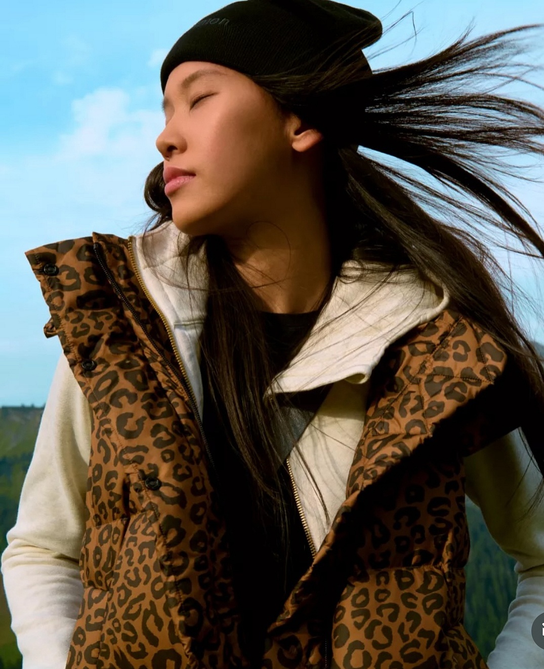 Hair: dark brown
